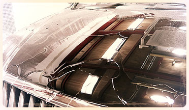 塗装終了後、コンパウンドを使用し、バフ掛けを行います。これで塗装面を鏡面仕上げしていきます。またホコリが塗装にかんでる部分も仕上げていきます。