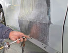 板金作業が終わったら、パテ作業になります。歪んでる箇所をパテにより形成していきます。