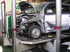 車の基盤となるフレームが歪んだ場合も、修正機でミリ単位で修正を行います。この作業を怠ると、ボディーの隙間や、車体が真っ直ぐ走らない原因となります。